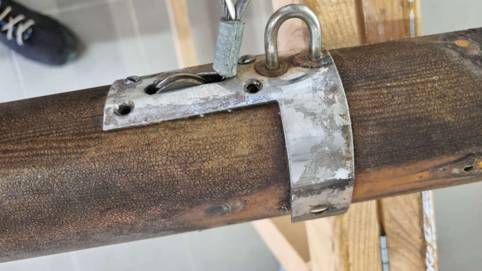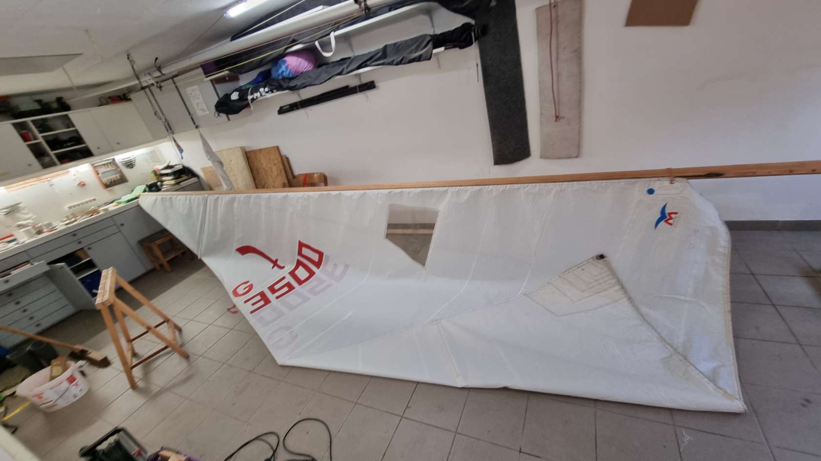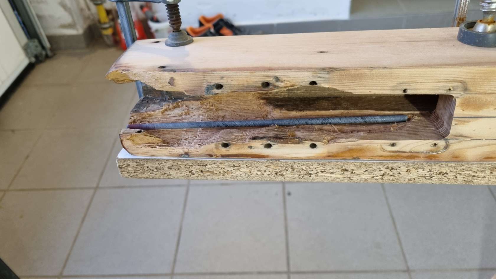 Was ist das denn? Ein weiterer Mast in meiner Garagenwerft. Ich werde doch wohl nicht zum Zweimaster umgebaut, oder bekomm ich etwa einen neuen Mast? Aber der ist doch aus Holz und sieht schon etwas vergammelt aus. Ne da hat sich Skipper wohl wieder was gegen die Winterlangeweile „eingefangen“. Der Mast gehört zur Antje, die in Inheiden zu Hause ist. Er soll bezüglich der Segelnut etwas überarbeitet werden und einen neunen Lackanstrich bekommen. Also eigentlich nix Großes. Als Skipper dann aber die Beschläge abgeschraubt hatte, zeigte sich schnell, dass da wohl etwas mehr zu tun sein wird. Einige Holzschrauben hatten zu viel Spiel bzw. waren doll. Die Segelnut war auf einer Seite 2 Meter lang eingerissen und damit locker. Lange hätte das nicht mehr gehalten, dann wäre bestimmt das Großsegel aus dem Mast gerissen.